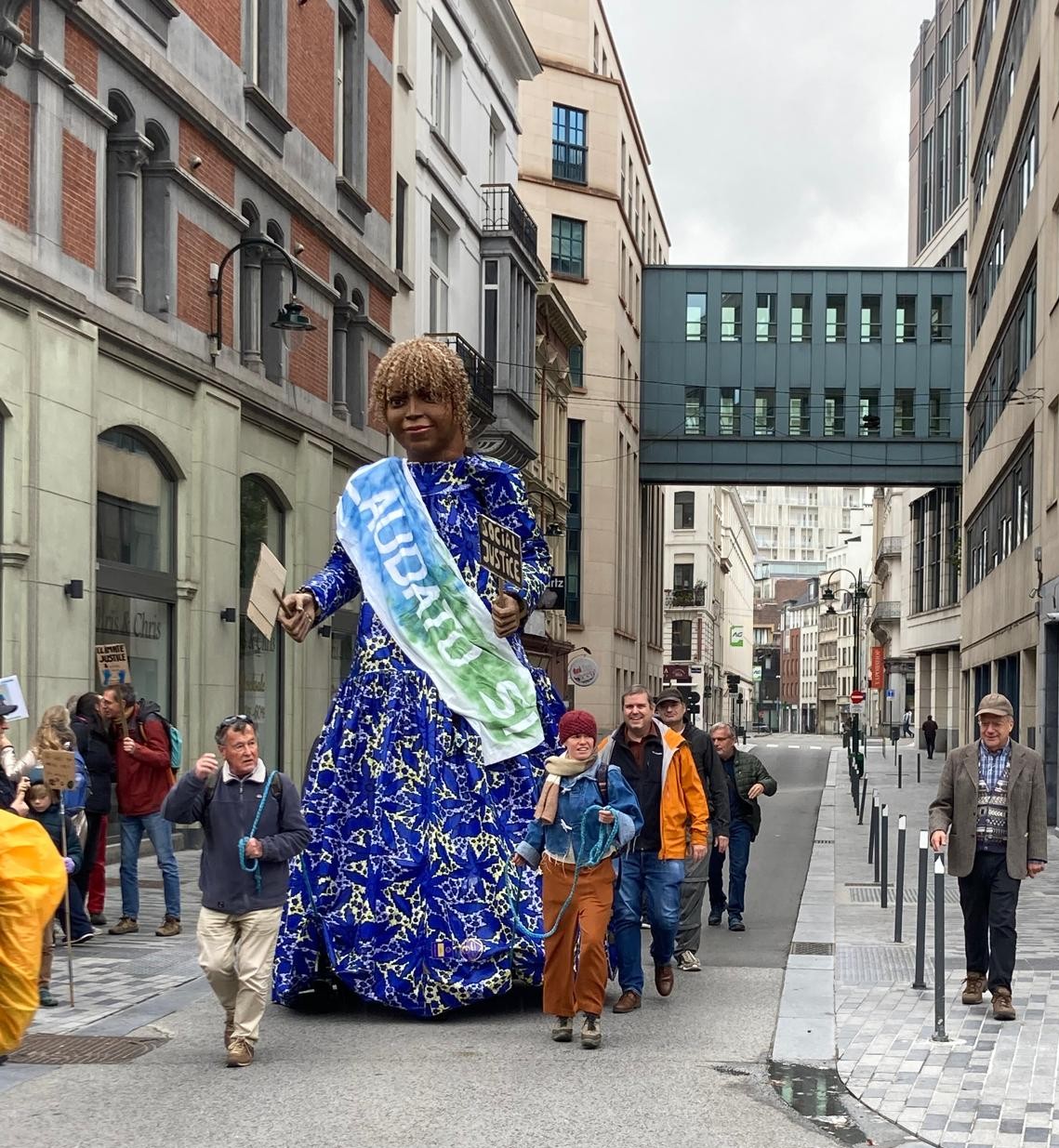 Avec la géante de la House of Compassion, Sabine, nous avons rejoint la marche pour le Climat en suivant les drapeaux d’Entraide et Fraternité. Le cortège s’est terminé au Cinquentenaire.